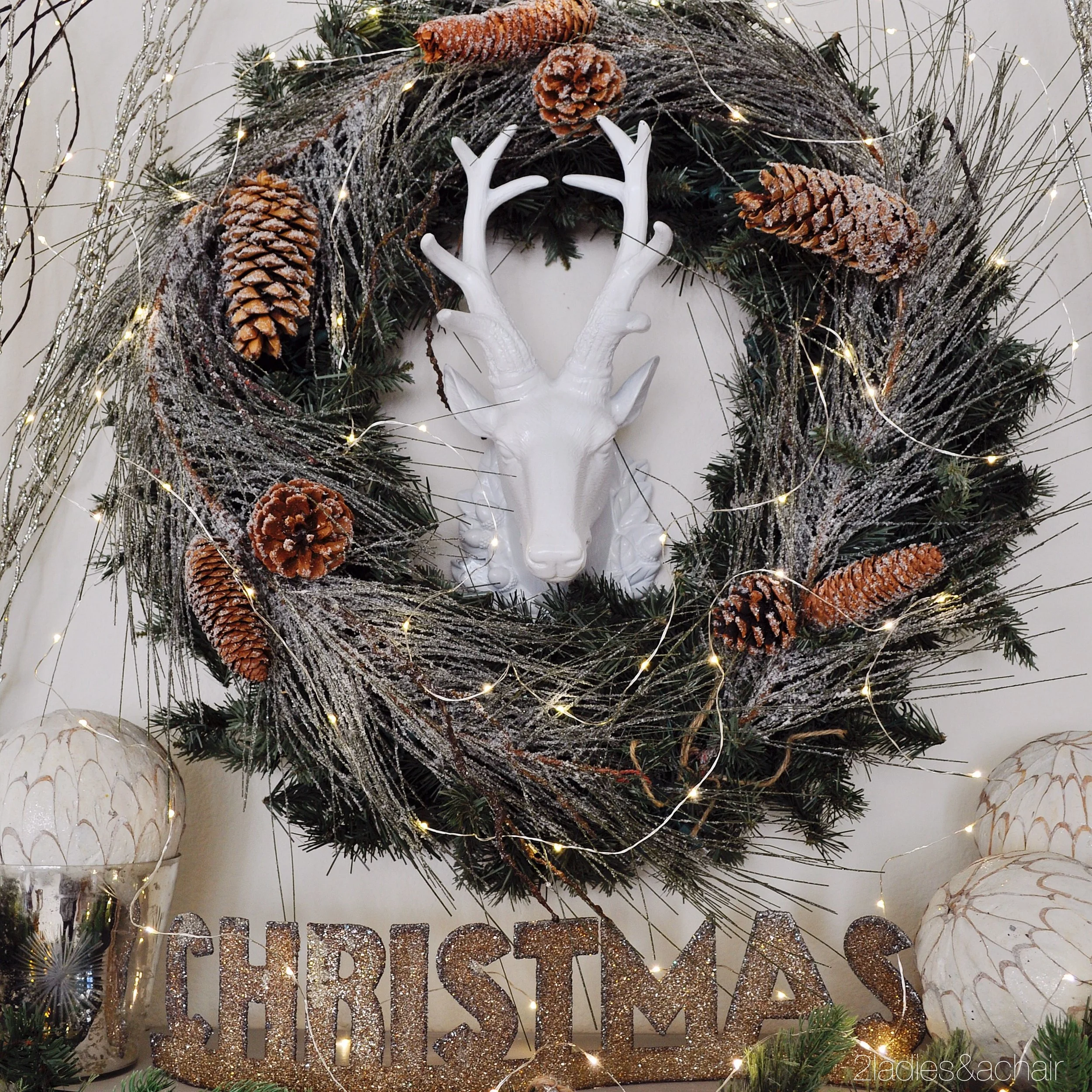 My fifth tip is to shop all year for your decor. Of course shop at HomeGoods! They have everything you need for decorating. But while shopping at other times of the year you should always be thinking about your decor needs. I found these amazing 'fairy lights' in the summer (some are battery-operated). I knew I would love them for decorating. I bought all they had on the shelf at HomeGoods. The deer head was bought in the springtime. I buy things I love then squirrel them away until I'm ready to use them.