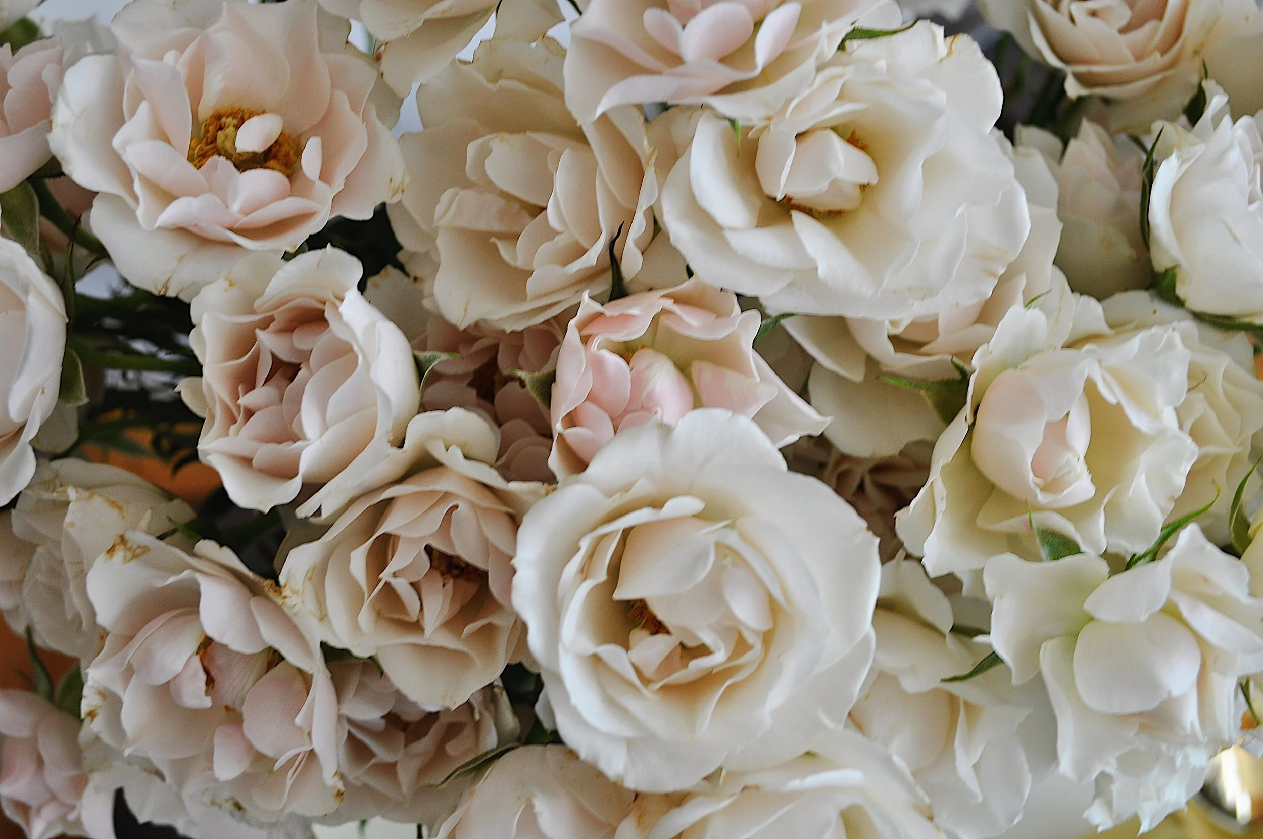 I'm not a flower expert. My flower shop is Trader Joe's or the local farmers' market. I'm not a flower arranger either, although I would like to learn more about flowers and how best to arrange them. But for now I trim the bottoms off a bouquet and make sure there's plenty of water in the vase. (If you love my gorgeous blush glass beads you can see them and more at Hallstrom Home)