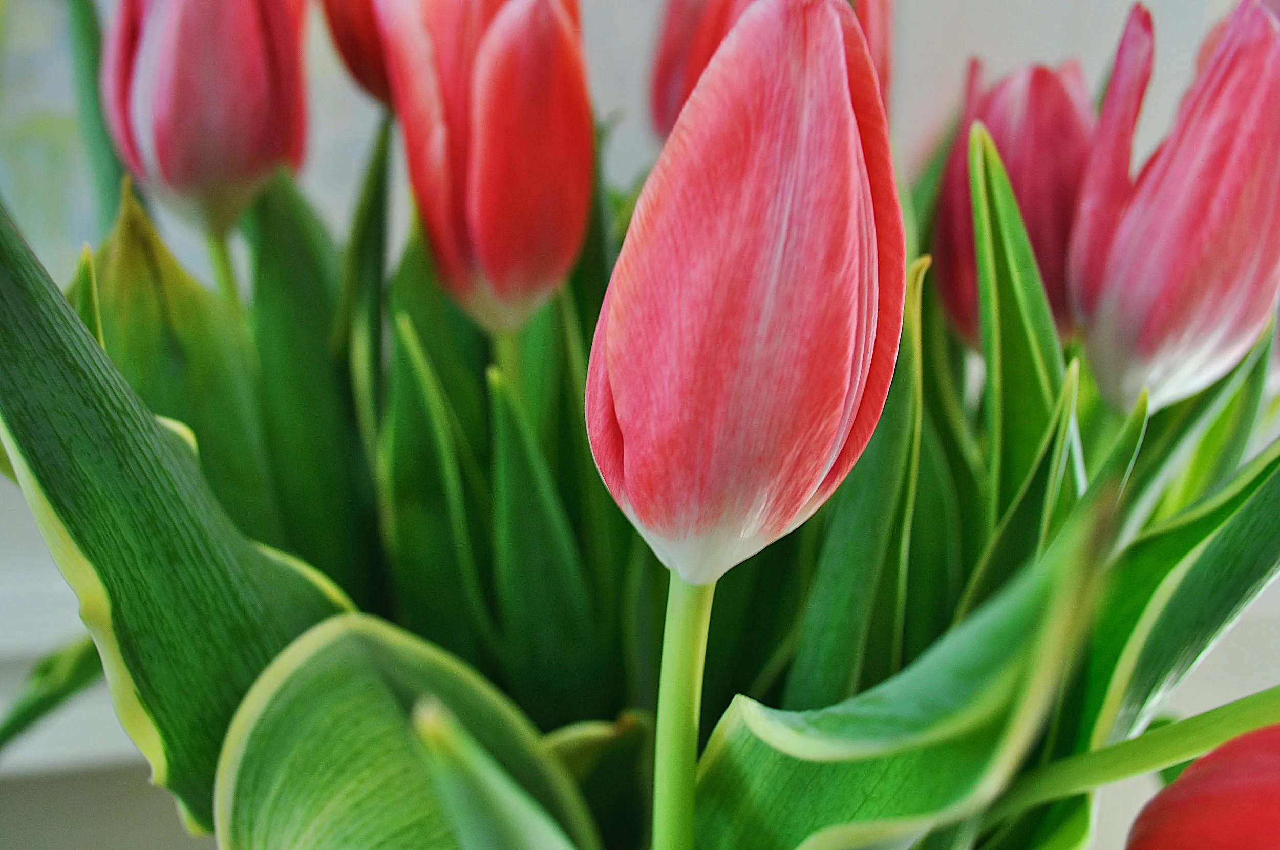 I love how the pink tulips add so much color and pop against a sea of grey!