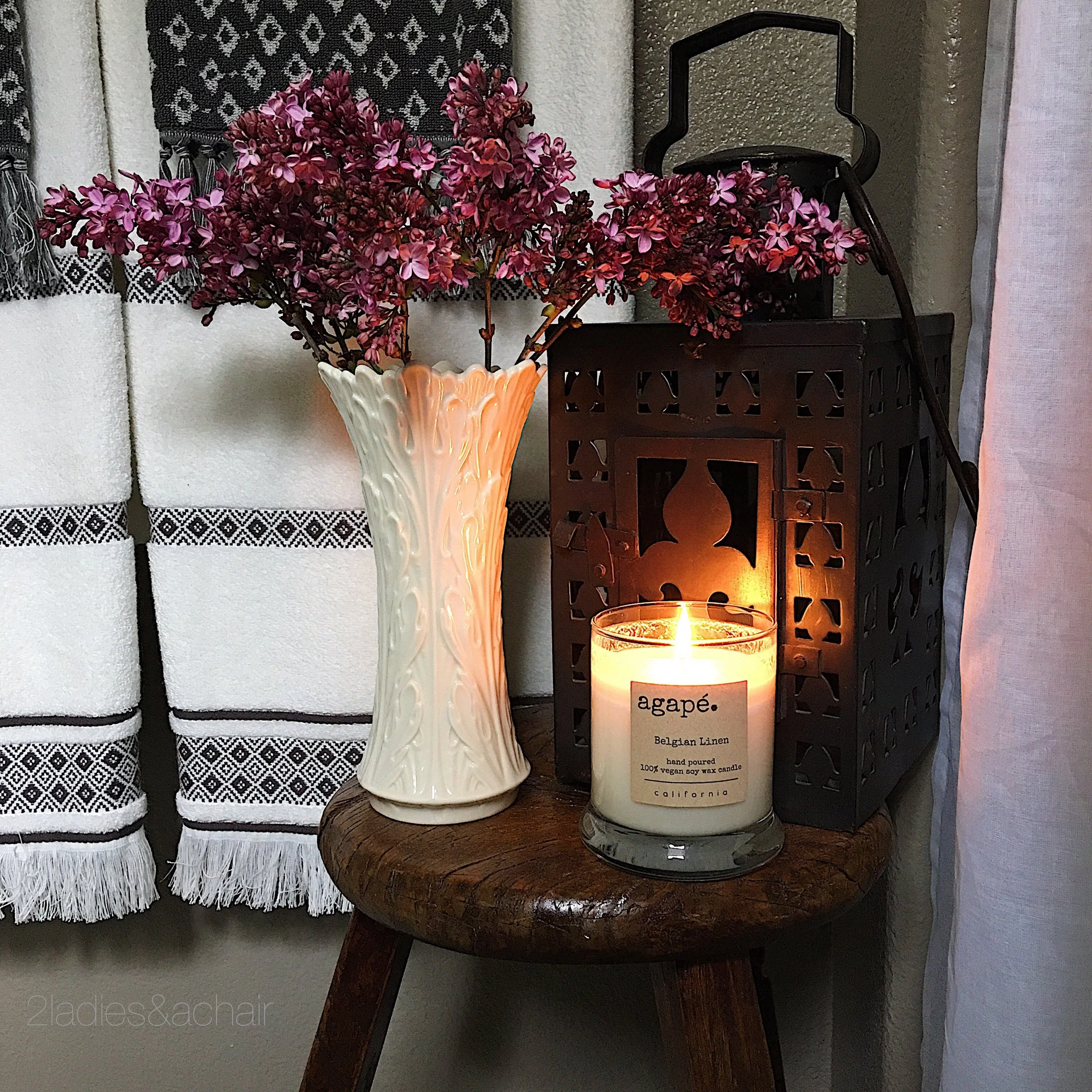 I love my generous neighbors who give me trimmings! Fresh flowers and a scented candle in the guest bathroom are always a welcoming sign.