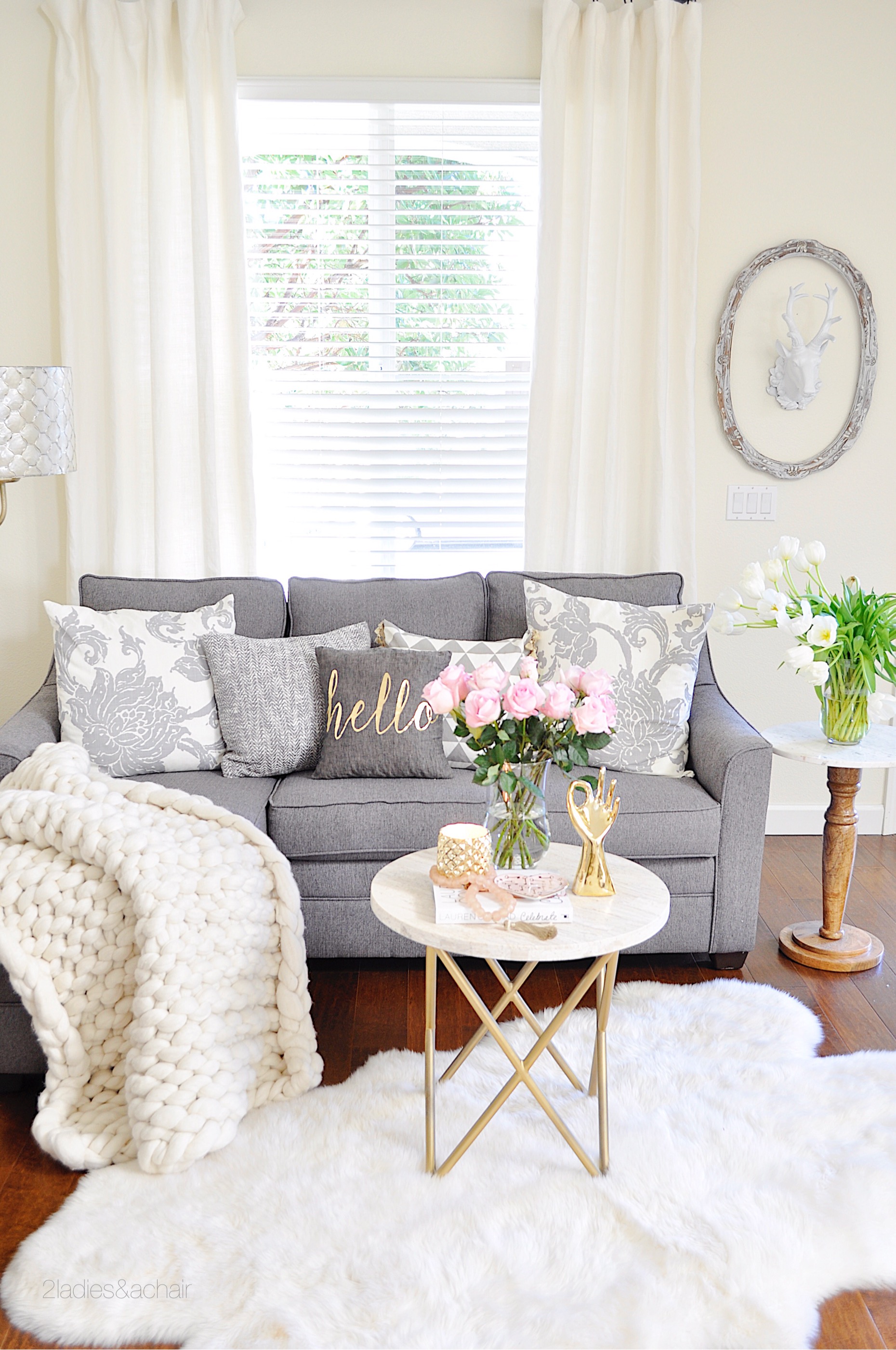 If you're reluctant to go bold with pink, how about starting with accent pillows? With white as my backdrop these soft velvet pillows look so inviting on my sofa. The muted pink tassel throw adds even more texture to this space. My sofa feels fresh and sophisticated!