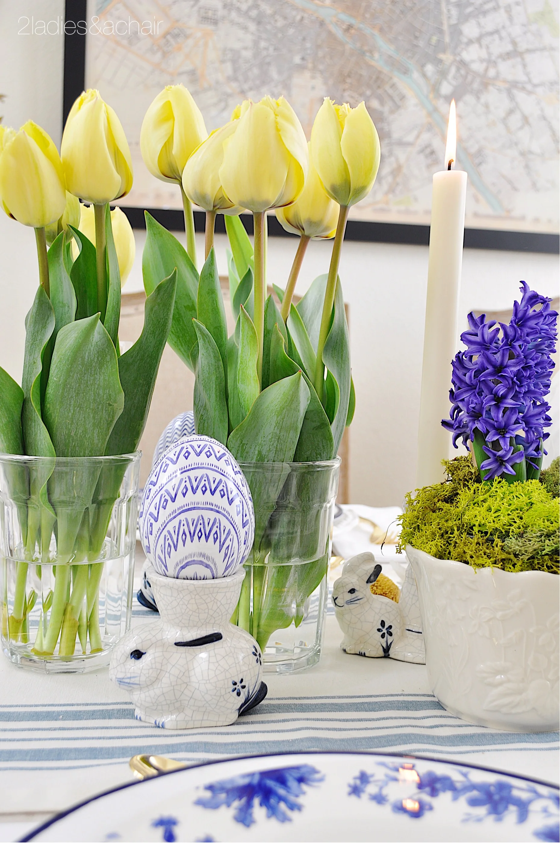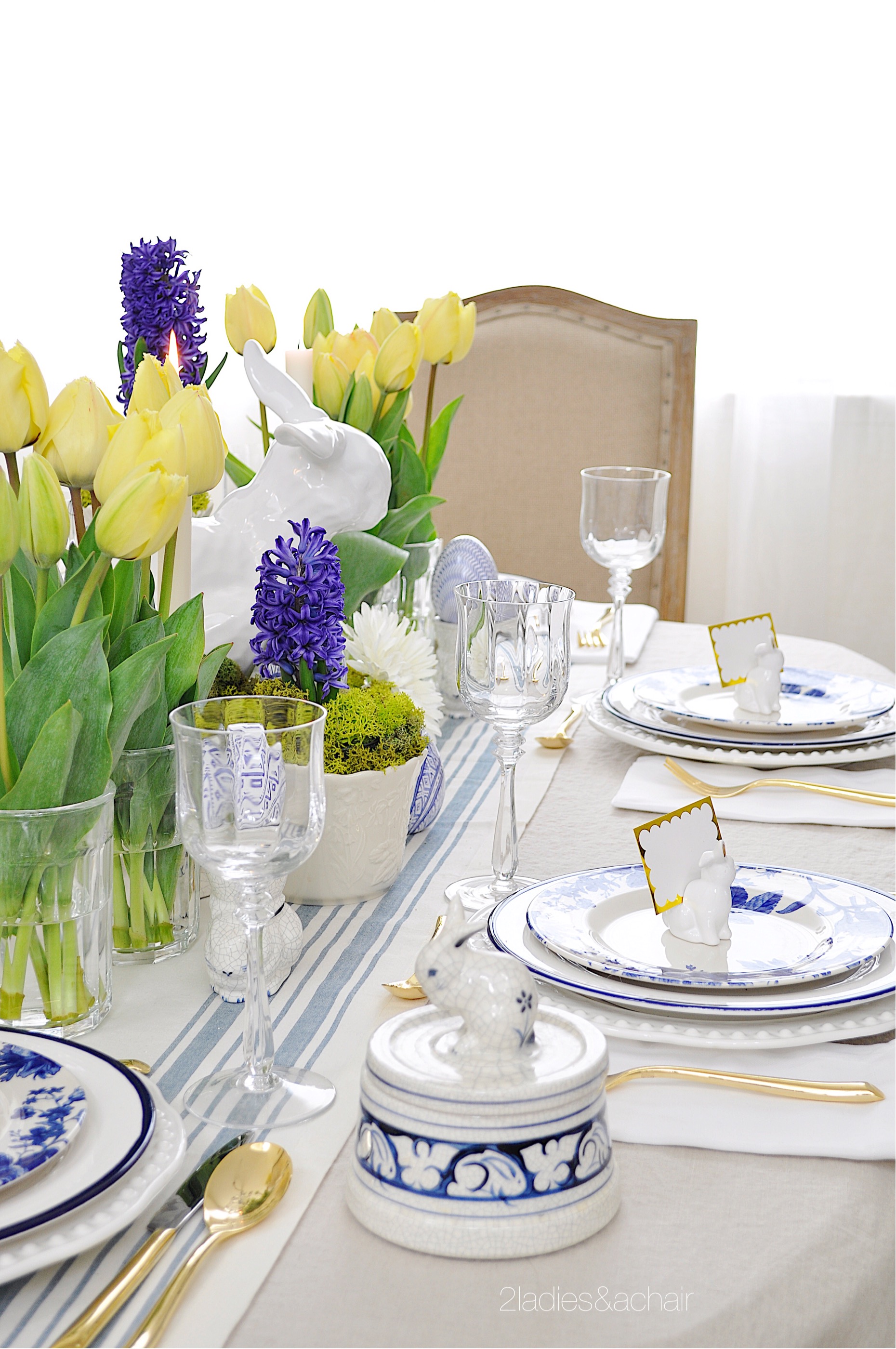 For me, decorating for Easter is all about spring flowers, beautiful color, and bunnies! The center of attention is my Easter table. We usually have a late brunch or an early dinner with family on Easter. So here is my Easter table inspiration for this year.